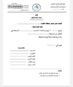 تقديم المستندات: تقديم قسيمة الزواج، البطاقة الشخصية السارية، وطلب صرف منحة الزواج.