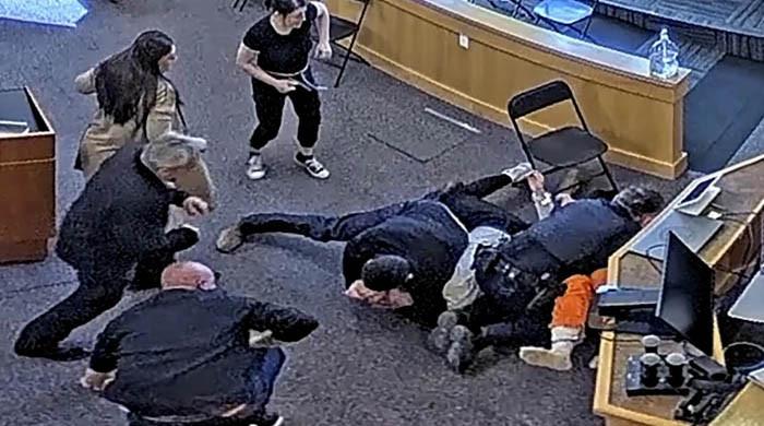 حاول ضابط الشرطة المتواجد في المحكمة حماية المتهم، ثم استخدم مسدس الصاعقة لإنقاذه من الاعتداء المتواصل.