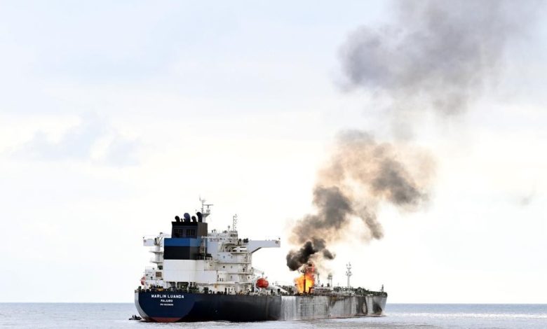 سفينة «ترو كونفيدانس» تحترق وتنحرف بعد تعرضها لصواريخ «الحوثيين»