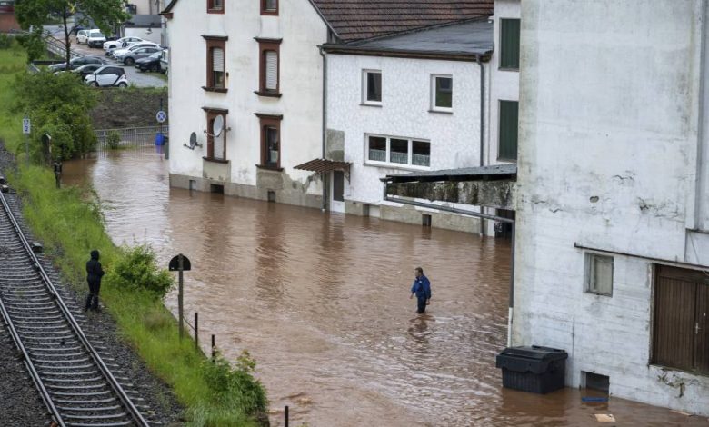 تم إخلاء مئات الأشخاص وتوقف العمل في محطة لتوليد الكهرباء بسبب الفيضانات والأمطار الغزيرة في جنوب غرب ألمانيا.