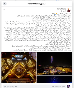 اختتم مهنا تعليقه بشكر الله على نعمة العمل الجماعي المتجانس، مهنئاً مصر بهذا الإنجاز التاريخي، ومعرباً عن امتنانه لكل من ساهم في نجاح الافتتاح.